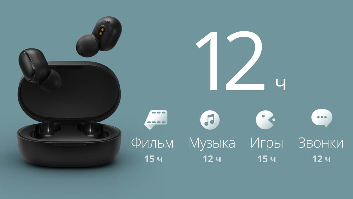 Встроенный емкий аккумулятор Redmi AirDots S обеспечивает около 4 часов автономной работы. Зарядный кейс способен дважды полностью зарядить наушники Редми, увеличивая время автономной работы до 12 часов.